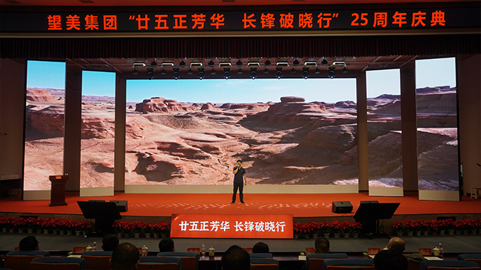 9月19日下午,望美集团“廿五正芳华 长锋破晓行”25周年庆典主题活动在沙河安全文体中心大礼堂举行。公司各部门管理者及员工代表出席活动并观看节目表演,分公司及其他员工通过线上直播观看。